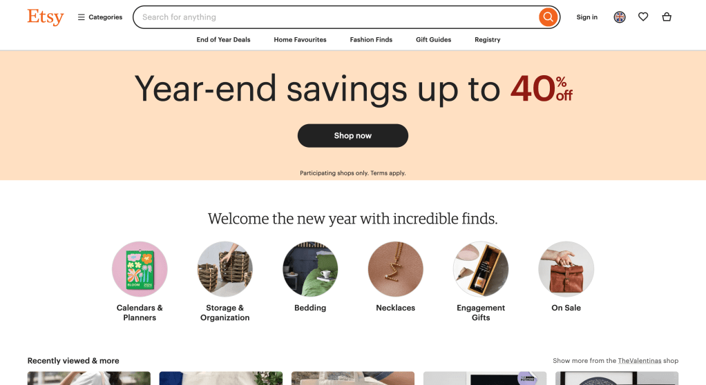 Etsy is a marketplace that allows you to purchase unique items from independent sellers all around the world.